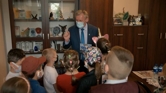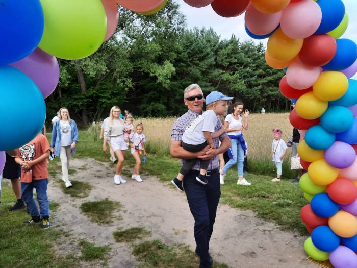 Wójt Wieczyński z dziećmi podczas Dnia Dziecka w 2021 roku, fot. Łukasz Piecyk/UG Obrowo