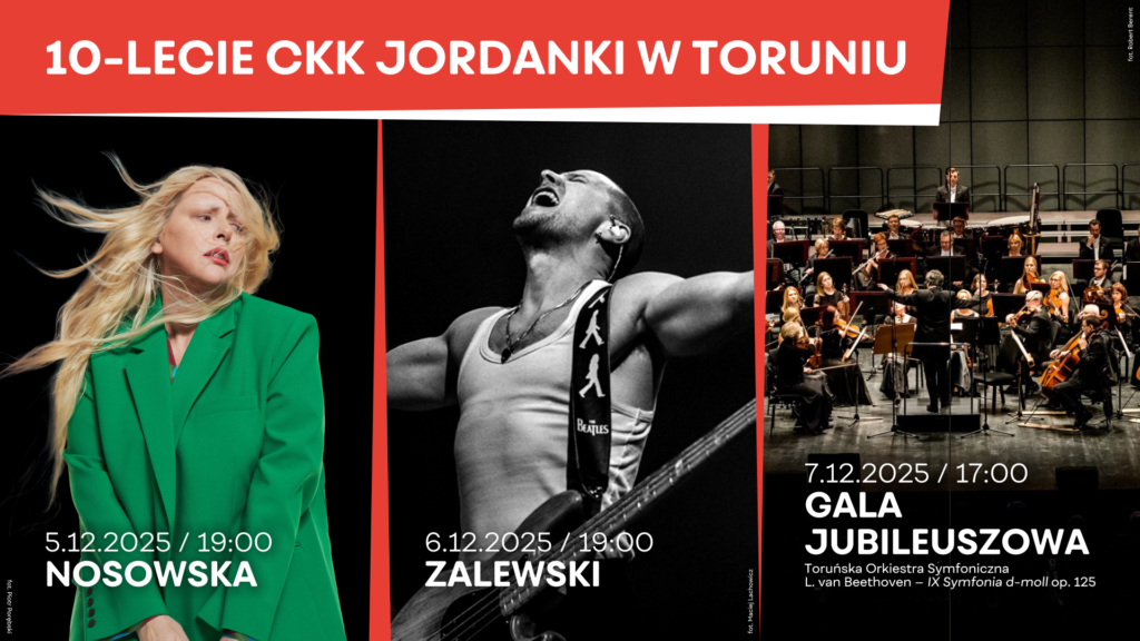 Obchody 10-lecia CKK Jordanki zwieńczy Gala Jubileuszowa, która odbędzie się w niedzielę, 7 grudnia 2025 roku o godz. 17:00 w Sali Koncertowej CKK Jordanki. W programie wieczoru znajdzie się monumentalne dzieło – IX Symfonia d-moll op. 125 Ludwiga van Beethovena w wykonaniu Toruńskiej Orkiestry Symfonicznej pod batutą Dainiusa Pavilionisa. Orkiestrze towarzyszyć będą: Katarzyna Dondalska (sopran), Monika Ledzion (mezzosopran), Andrzej Lampert (tenor) i Tomasz Rak (baryton), a także Chór Uniwersytetu Mikołaja Kopernika w Toruniu, Chór Uniwersytetu Kazimierza Wielkiego w Bydgoszczy, Chór Politechniki Bydgoskiej oraz Chór Młodzieżowy Semper Iuvenes Zespołu Szkół Muzycznych w Toruniu.