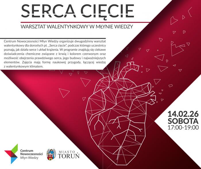 Warsztat dla dorosłych “Serca Cięcie” to specjalna propozycja na Walentynki w Centrum Nowoczesności Młyn Wiedzy w Toruniu. Wydarzenie pozwoli spojrzeć na ten narząd z nowej, zupełnie innej niż na co dzień perspektywy: naukowej, zaskakującej i jednocześnie bliskiej.