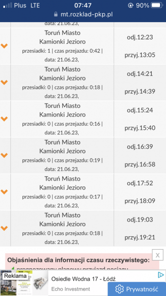 Skąd Ty bierzesz te informacje. Jest taka strona PKP. I tam można zobaczyć rozkład downie.