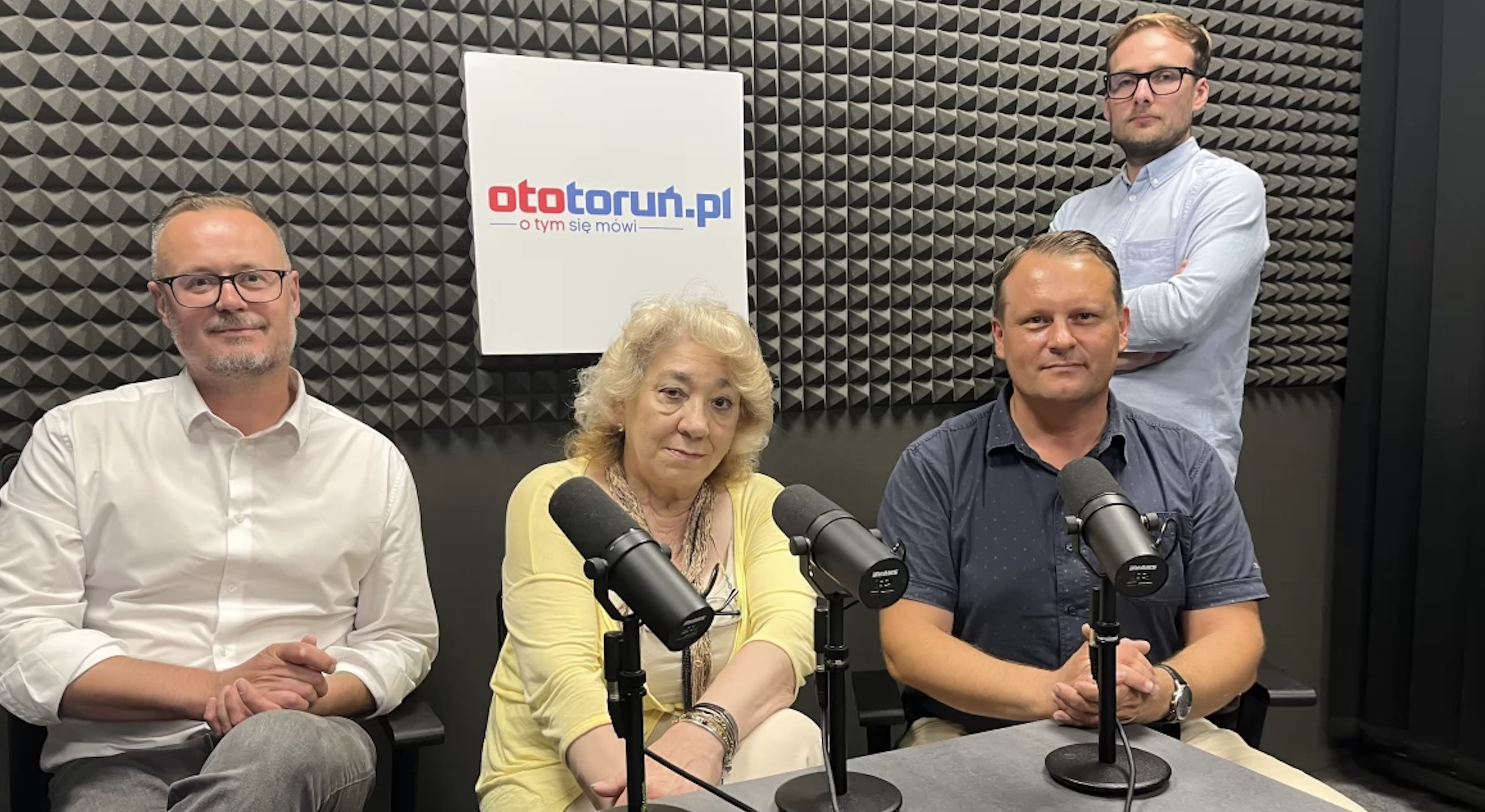 Łukasz Broniszewski, Danka Stępkowska, Michał Jakubaszek i Filip Sobczak po jednym z programów "Pytania o Toruń".