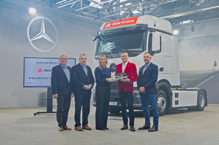 W uroczystości przygotowanej dla Daw-Transu udział wzięli Stina Fagerman, Head of Marketing, Sales and Services Mercedes-Benz Trucks, Przemysław Rajewski, prezes Daimler Truck Polska oraz Sławomir Kwiatkowski, Head of Fleet and Dealer Sales Daimler Truck Polska, a także Paweł Malinowski, szef sprzedaży Kujawski Truck Center.