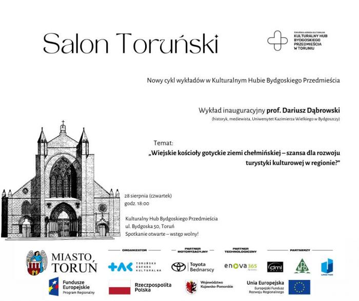 „Salon toruński” chce wskrzesić ducha dawnego Bydgoskiego Przedmieścia jako przestrzeni roziskrzonej od intelektualnego fermentu, estetycznych zachwytów i artystycznych poszukiwań. W Kulturalnym Hubie Bydgoskiego Przedmieścia pojawią się toruńscy intelektualiści, którzy w formie luźnych wykładów podzielą się swoimi refleksjami i pasjami.