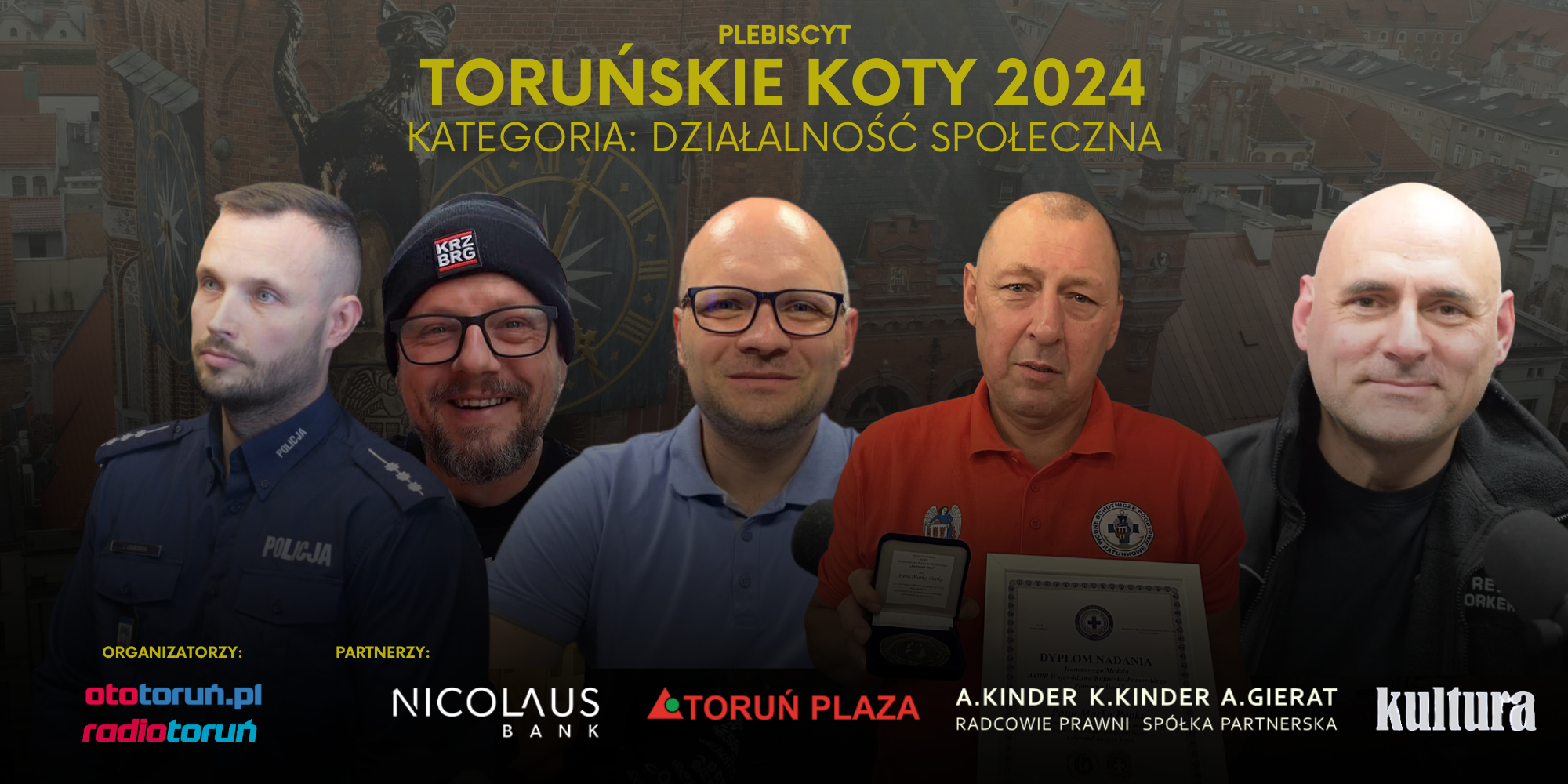 Inauguracyjna edycja "Toruńskich Kotów" oficjalnie wystartowała. To plebiscyt, w którym wspólnie z naszymi Czytelnikami wybieramy "Koty" w pięciu kategoriach - polityka, sport, działalność społeczna, kultura oraz innowacje. Do każdej z nich nominowaliśmy pięciu kandydatów.