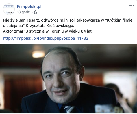 3 stycznia w Toruniu w wieku 84 lat zmarł Jan Tesarz. O śmierci aktora poinformował portal filmpolski.pl.