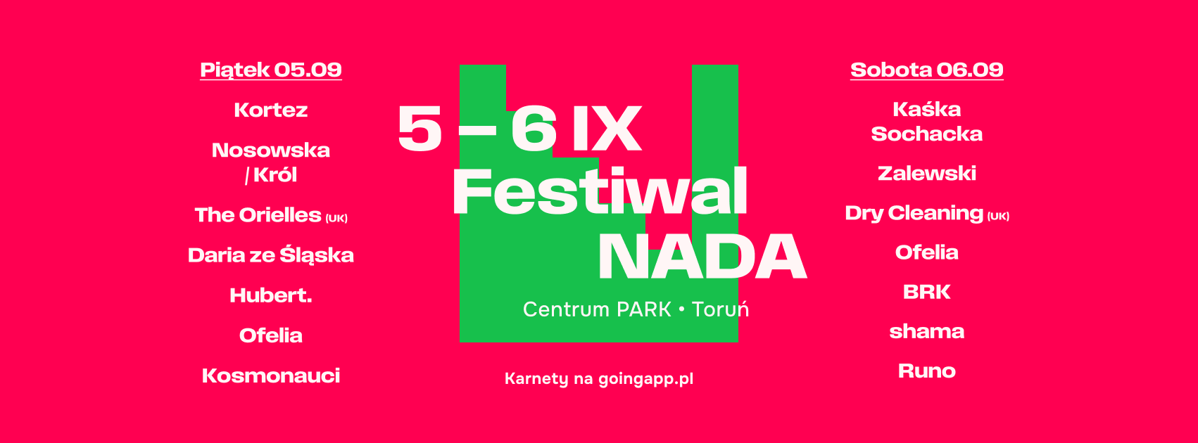 5 i 6 września na terenie Centrum Targowego Park w Toruniu odbędzie się kolejna edycja Festiwalu NADA. Wspólnie z organizatorami tego wydarzenia przygotowaliśmy dla Was konkurs, w którym do wygrania są podwójne zaproszenia na imprezę.
