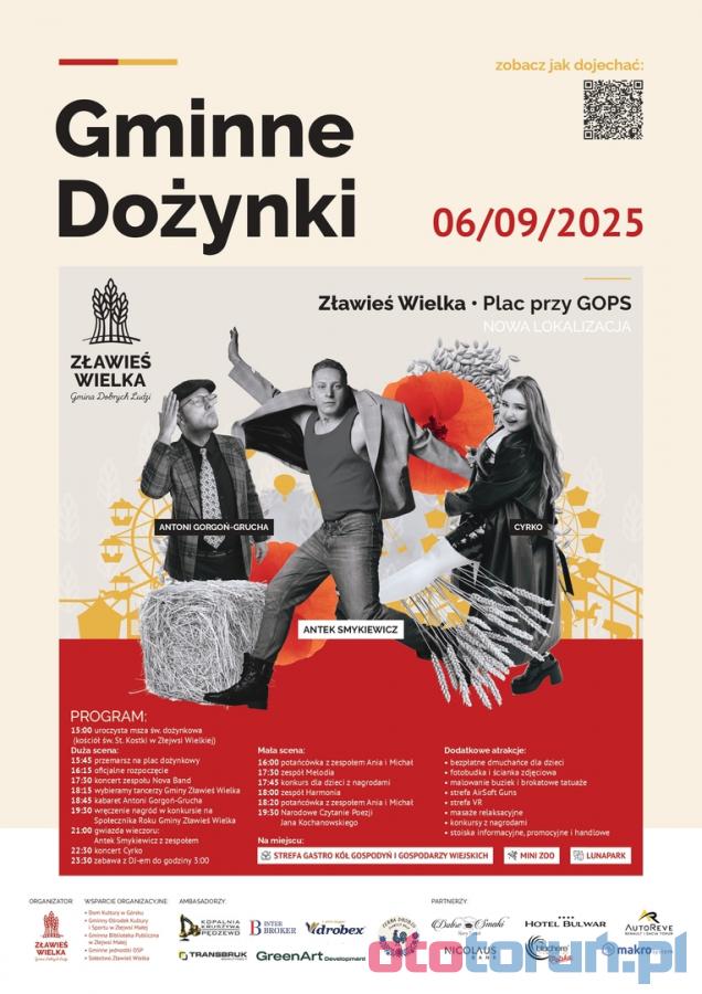 Zapraszamy do obejrzenia galerii zdjęć z tegorocznych dożynek w gminie Zławieś Wielka! Impreza odbyła się na placu przy Gminnym Ośrodku Pomocy Społecznej, oferując bogaty program dla całych rodzin. Na zdjęciach zobaczysz tradycyjną Msze Świętą Dożynkową, barwny korowód dożynkowy, koncerty, występy artystów, a także liczne atrakcje dla najmłodszych, takie jak dmuchańce, mini zoo czy lunapark. Przejrzyj galerię, aby poczuć klimat tego wielkiego dożynkowego święta!