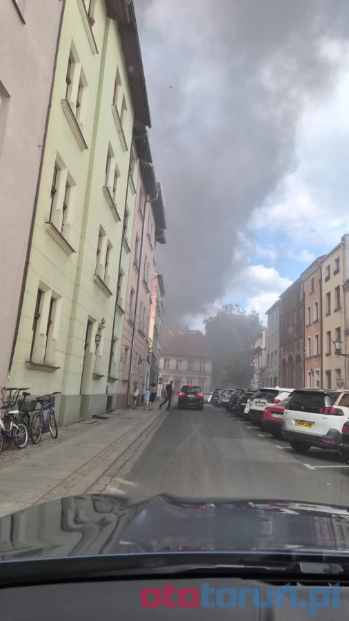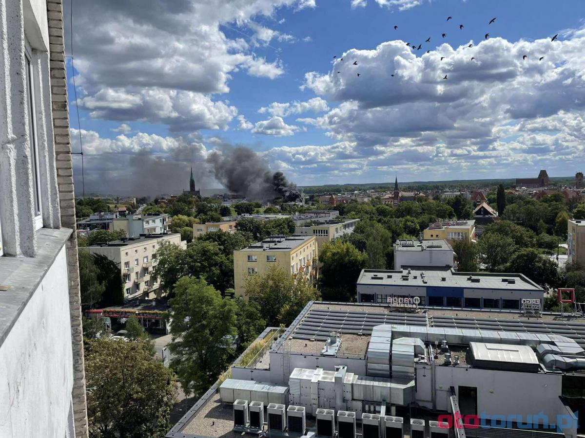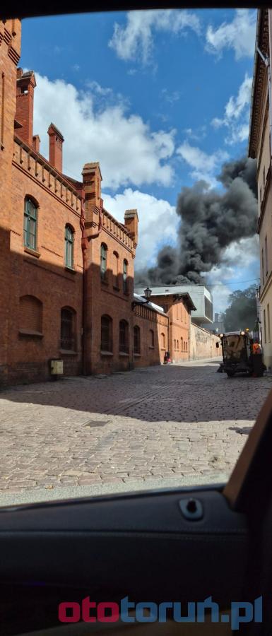 Zdjęcia z pożaru budynku przy ul. Prostej w Toruniu. Kłęby czarnego dymu unoszące się nad miastem, do akcji ruszyło osiem zastępów straży pożarnej. Pożar spowodował duże utrudnienia ruchu, ul. Wały gen. Sikorskiego jest całkowicie nieprzejezdna. Sytuacja dynamiczna, więcej informacji wkrótce. Kontakt: redakcja@ototorun.pl. (Autor: AM) #Toruń #pożar #strażpożarna #sytuacjadowdjęć.