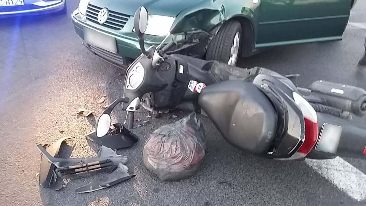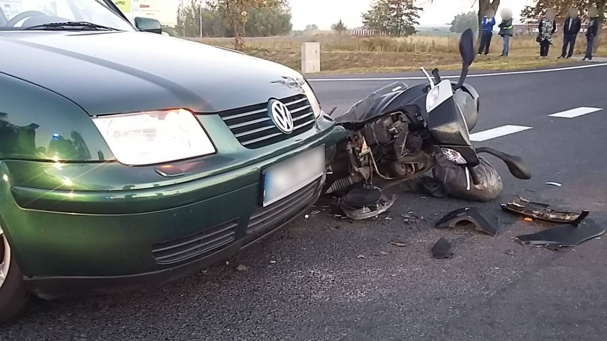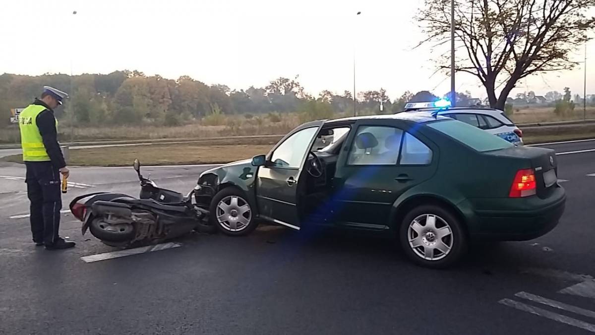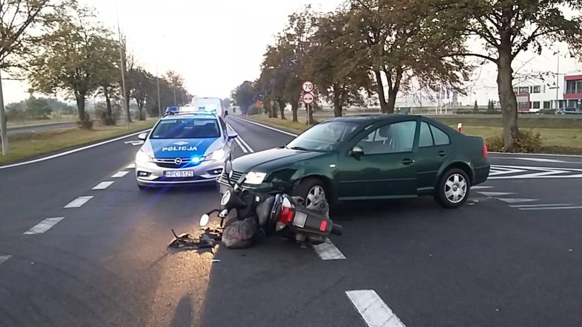 Groźny wypadek pod Toruniem. Kierowca samochodu nie ustąpił przejazdu motorowerzyście [FOTO]