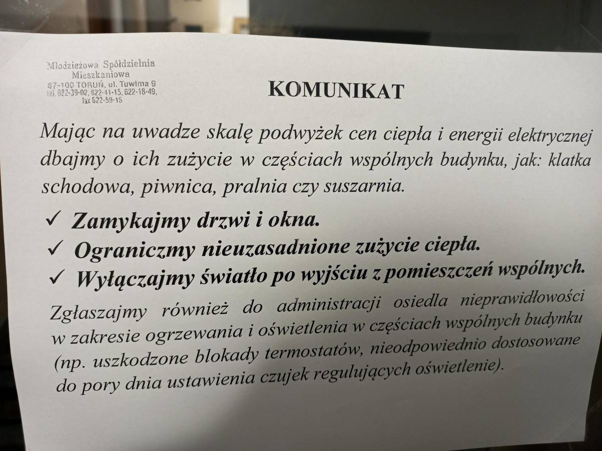 Zdjęcia Kryzys energetyczny w Toruniu. Spółdzielnia wywiesiła komunikaty - fotorelacja