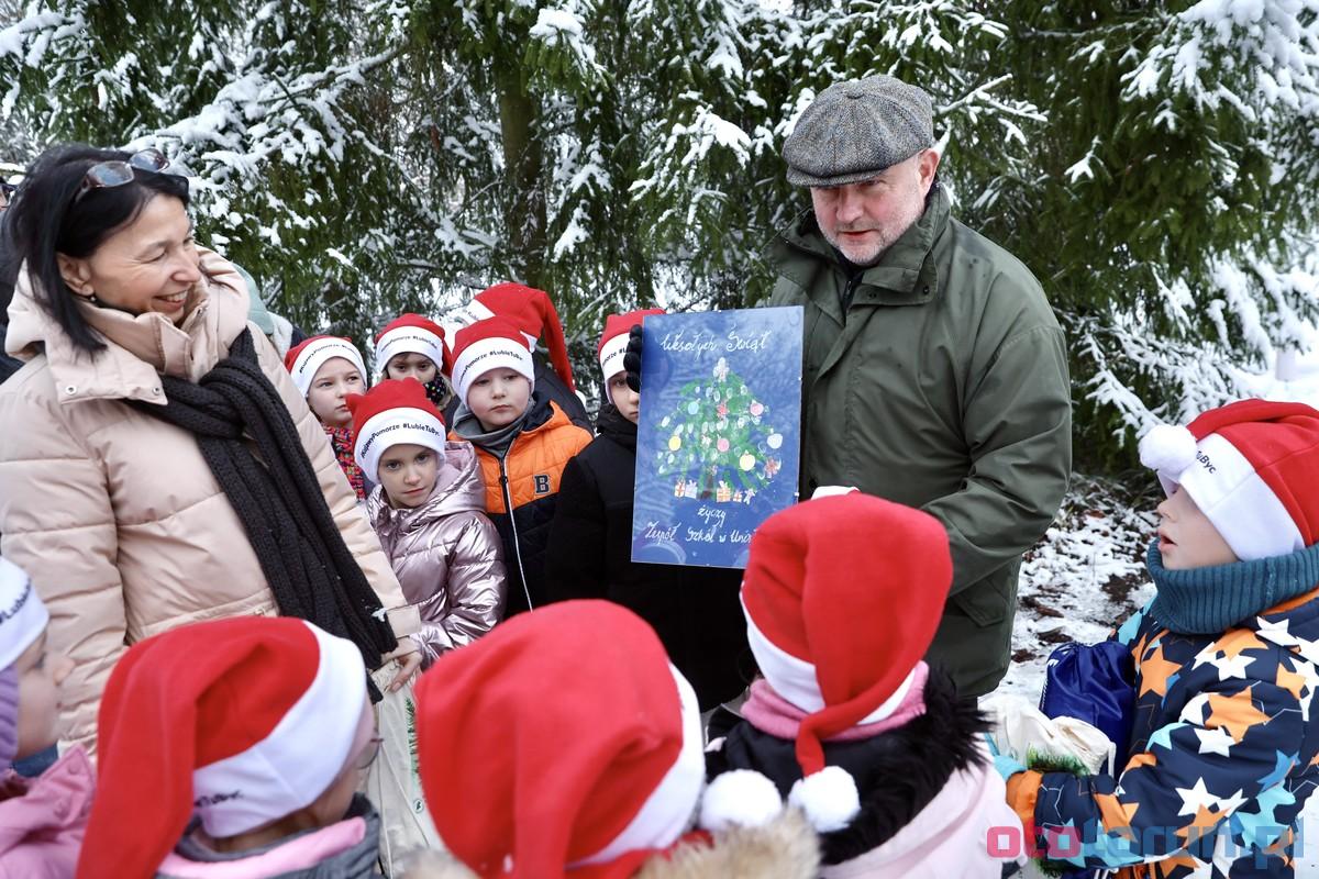 Marszałek Piotr Całbecki z dziećmi wybrali świąteczne drzewko