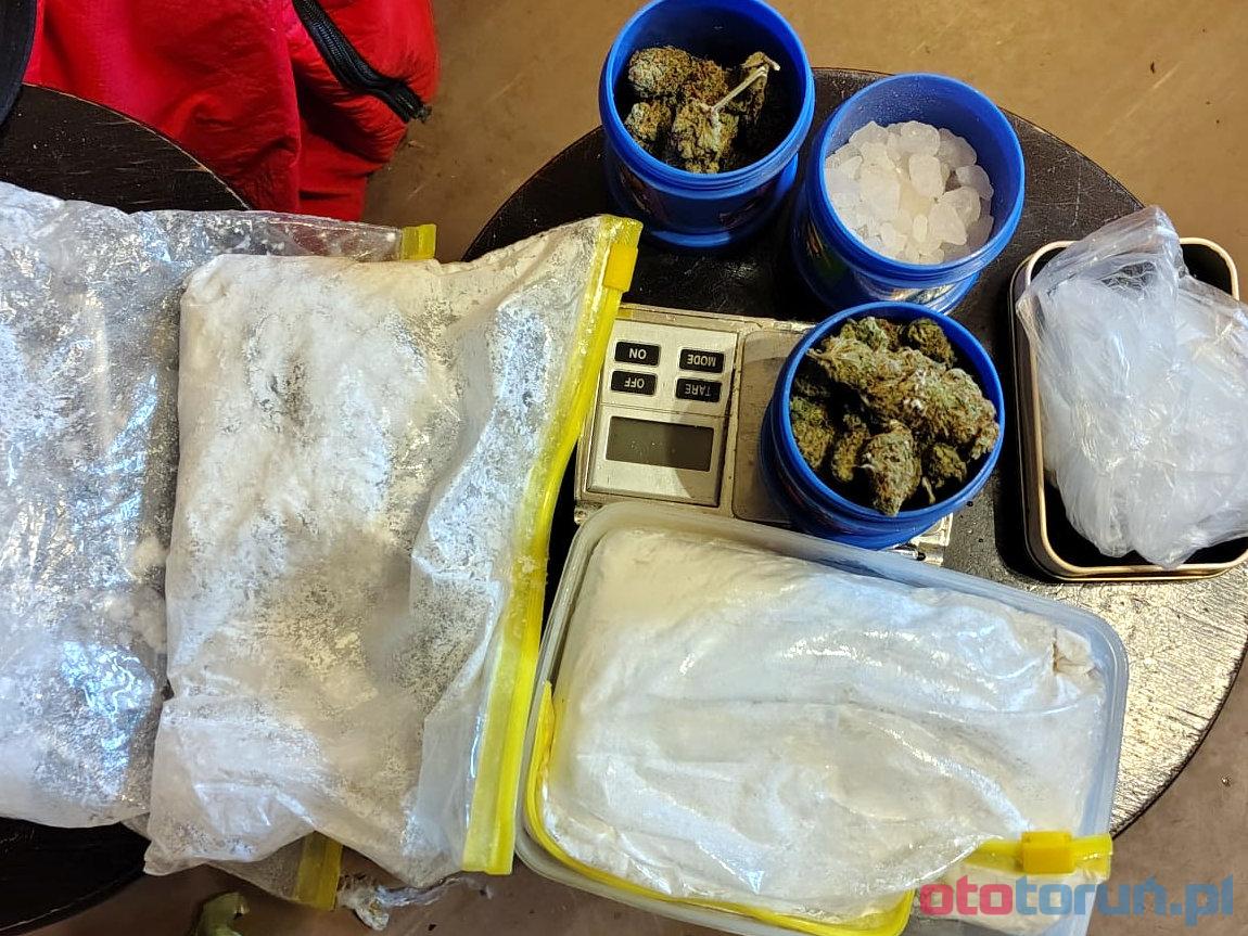 Kryminalni z toruńskiego Rubinkowa przerwali lokalny kanał dystrybucji narkotyków, zatrzymując parę mieszkańców z Torunia. W ich miejscu zamieszkania funkcjonariusze znaleźli amfetaminę, marihuanę i nielegalne papierosy. Zatrzymanym grozi długa odsiadka - do 12 lat więzienia. To kolejne uderzenie w narkobiznes w regionie.
