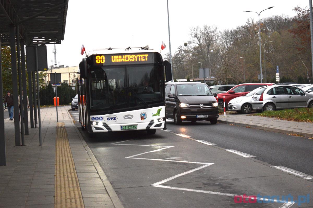 Galeria zdjęć przedstawiająca uroczystą inaugurację roku akademickiego na Uniwersytecie Mikołaja Kopernika oraz podpisanie porozumienia między Gminą Miasta Toruń a uczelnią. Zdjęcia przedstawiają prezydenta Torunia, rektora UMK i studentów, a także nowo uruchomioną linię autobusową numer 80, która ma ułatwić dojazd studentom na kampus. Widoczne są także autobusy na trasie oraz przystanki, przez które będzie przebiegała trasa. Ujęcia pokazują zaangażowanie oraz entuzjazm obu stron porozumienia, które ma usprawnić komunikację między dworcem a kampusem uniwersyteckim.