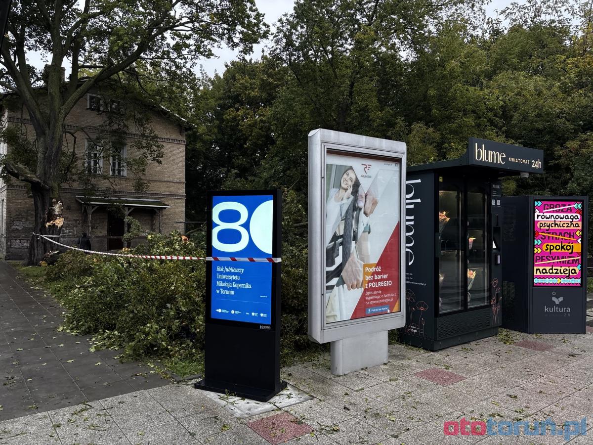 Drzewo runęło w Toruniu obok dworca kolejowego, zaledwie o włos uniknięto tragedii. Nagłe zdarzenie, prawdopodobnie spowodowane silnym wiatrem, potwierdza, że warunki atmosferyczne mogą być groźne. Szczęśliwie nikomu nic się nie stało, a strażacy mieli pełne ręce roboty z powodu licznych interwencji spowodowanych rozróbkami pogodowymi. Zdjęcia z miejsca zdarzenia pokazują, jak ważne jest zachowywanie ostrożności w obliczu niebezpieczeństw natury.