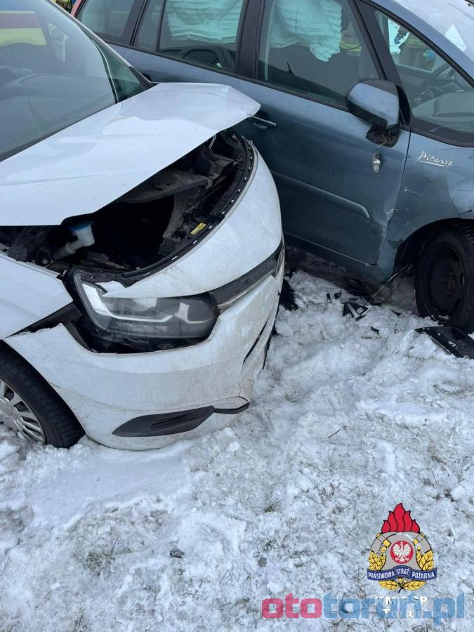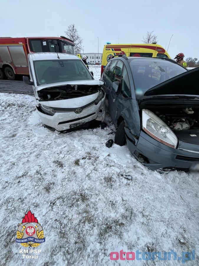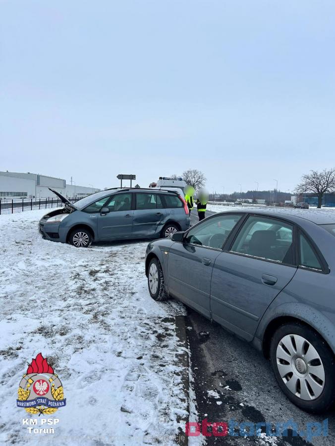 Groźny wypadek pod Toruniem spowodowany kolizją trzech samochodów: Audi, Citroena i Toyoty. Kierowca Audi skręcając w lewo zderzył się z Citroenem, który obrócił się i uderzył w Toyotę. Jedna osoba trafiła do szpitala. Trudne warunki na drogach - ostrzeżenie przed gołoledzią. Miejmy się na baczności!