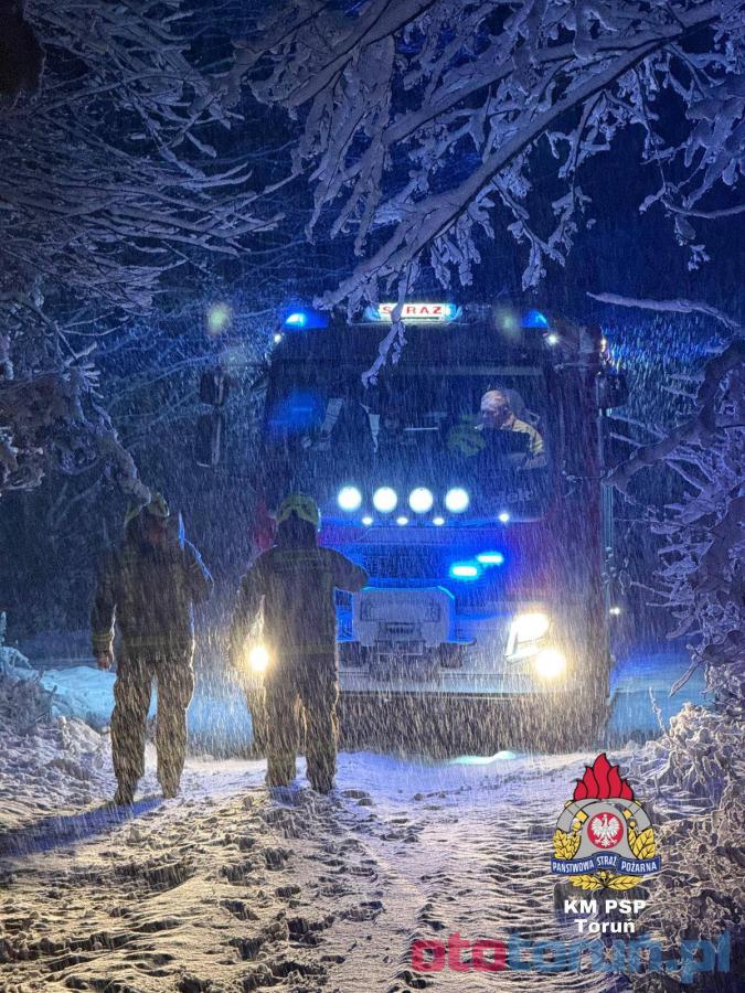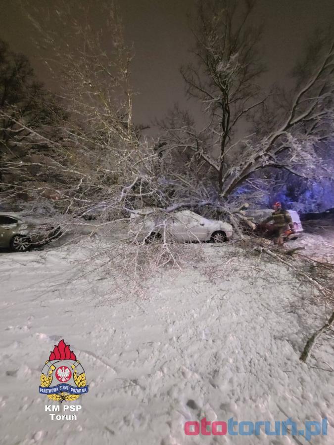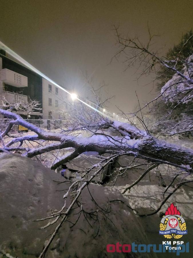 Galeria zdjęć: Nawałnica śnieżna w Toruniu i powiecie - skutki i interwencje straży pożarnej Widoki z Torunia i okolic po intensywnych opadach śniegu, 80 zdarzeń z udziałem straży pożarnej - powalone drzewa, oberwane konary, przerwy w dostawie prądu. Interwencje na śliskich drogach: kolizje, wyciąganie pojazdów z rowów. Dziś chmury nadal nad miastem, temperatura do 2 stopni, lekki przymrozek - kierowcy, uważajcie!łącznie z linkiem: [facebook:https://www.facebook.com/straztorun/posts/pfbid02gair2NVWnn7pJXym6FeXNdceeco4TLprbf4EfwRYFojCrJjKcq6PBJSu3C9XxrFnl]