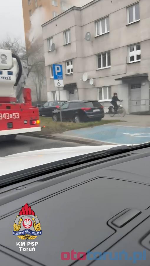 Zdjęcia Pożar w wieżowcu w Toruniu. Paliło się mieszkanie na czwartym piętrze - fotorelacja