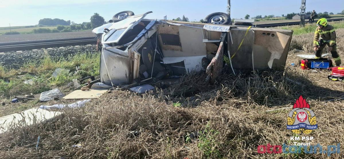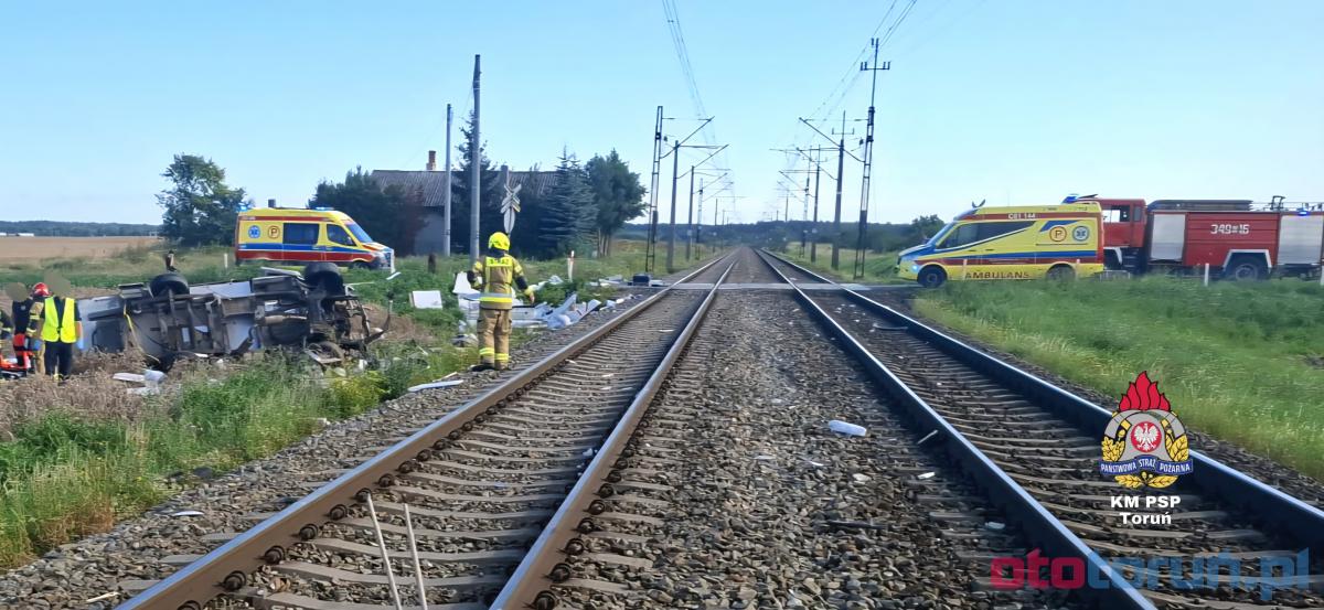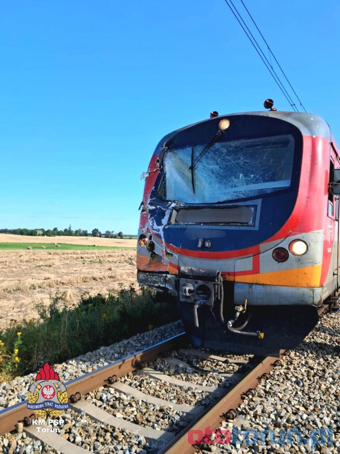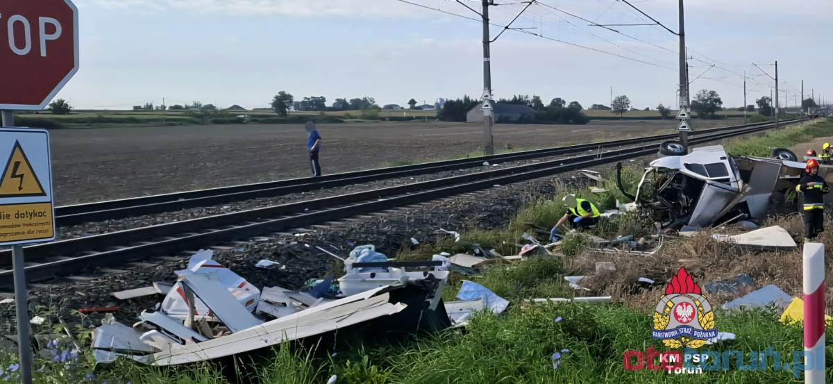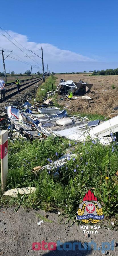 W galerii znajdują się zdjęcia z tragicznego wypadku pod Toruniem, gdzie pociąg zderzył się z kamperem na przejeździe kolejowym w Gronówku. Kobieta kierująca pojazdem straciła życie, a pasażer trafił do szpitala. Skład był opóźniony o niemal 200 minut, wpływając na podróżujących. Służby apelują o ostrożność na przejazdach kolejowych.