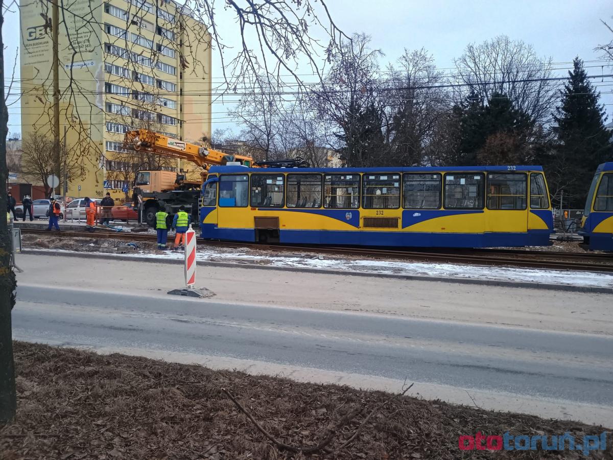Zdjęcia Awaria na torach w Toruniu. Tramwaj wypadł z szyn - fotorelacja