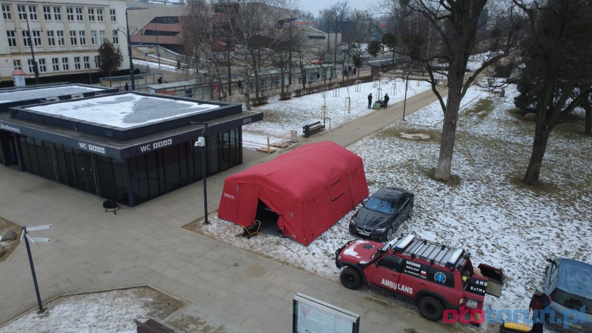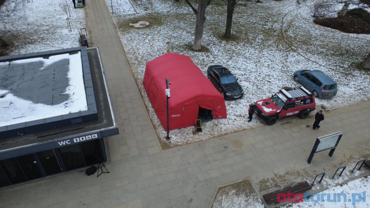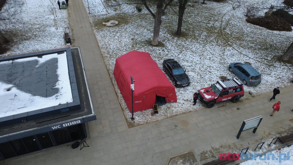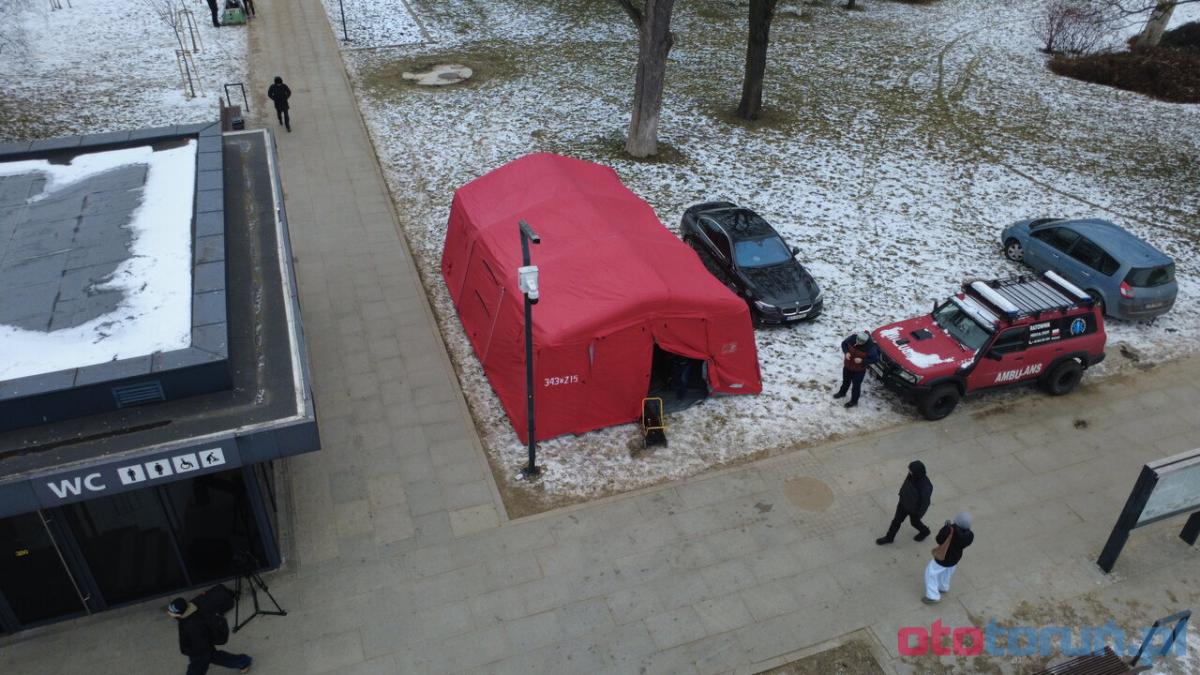 W centrum Torunia stanęły dwa czerwone namioty. Będą dostępne przez trzy dni
