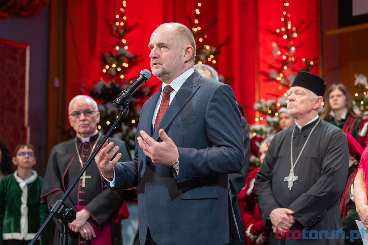Opis galerii zdjęć z wydarzenia, na którym przywódcy regionu składają życzenia świąteczne i podkreślają znaczenie jedności i pojednania. Marszałek i przewodnicząca sejmiku zachęcają do przebaczenia i refleksji, wojewoda podkreśla wartość tradycji Bożego Narodzenia, a biskup dziękuje za służbę bliźniemu. Nastrojowa atmosfera spotkania w duchu solidarności, wspólnego celebracji oraz pamięci o zmarłych. Boże Narodzenie jako czas sacrum i refleksji nad sensem życia. Piękne życzenia na nowy rok, który ma przynieść nowe możliwości i otwarcie. Mocne przesłanie o jedności i wzajemnym szacunku w regionie.