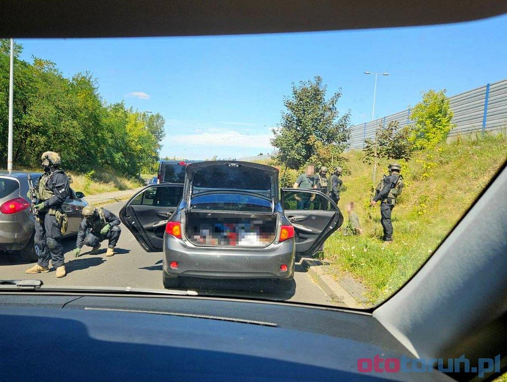 Galeria zdjęć z akcji służb w Toruniu, gdzie zatrzymano przestępcę poszukiwanego przez Interpol. 29-letni obywatel Ukrainy, odpowiedzialny za uszkodzenie ciała dwóch osób bronią palną, został obezwładniony. Zdjęcia przedstawiają dramatyczną operację z udziałem policji i jednostki antyterrorystycznej, które doprowadziły do schwytania groźnego przestępcy.