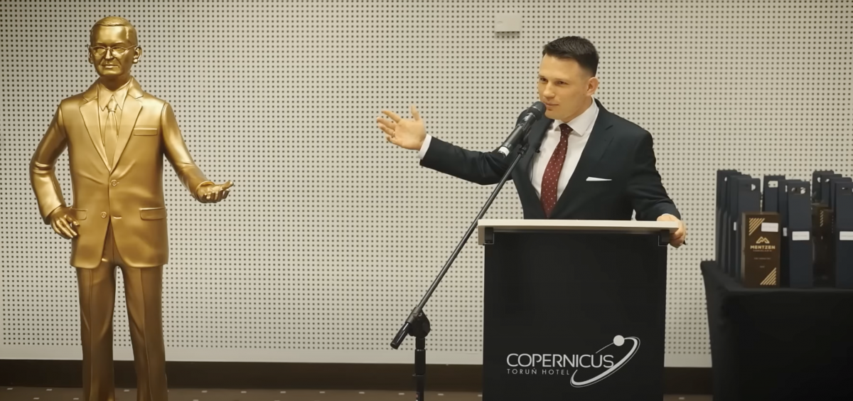 W Toruniu został odsłonięty złoty pomnik Mateusza Morawieckiego