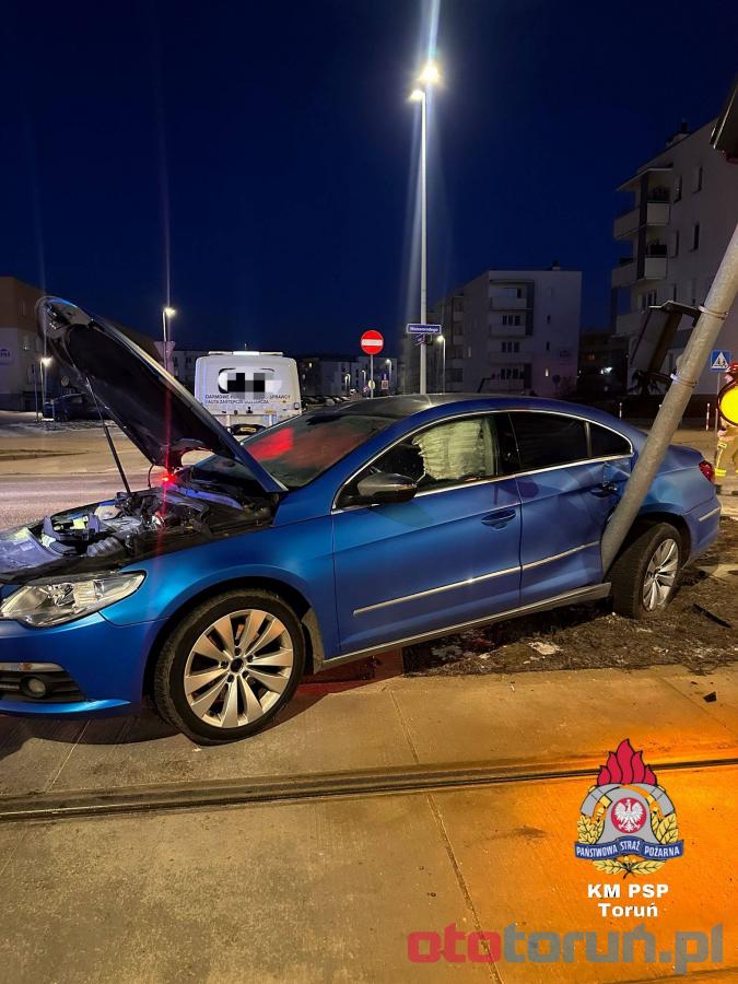 Galeria zdjęć przedstawia wypadek drogowy, który miał miejsce na skrzyżowaniu ulic Watzenrodego i Hubego w Toruniu. Kierowca volkswagena nie ustąpił pierwszeństwa, co spowodowało zderzenie z renault. Na skutek kolizji auto wjechało w słup przy torach tramwajowych. Nikt nie ucierpiał, jednak 36-latek został ukarany mandatem. Internauci skarżą się na niebezpieczne skrzyżowanie, a policja apeluje o ostrożność na drodze.