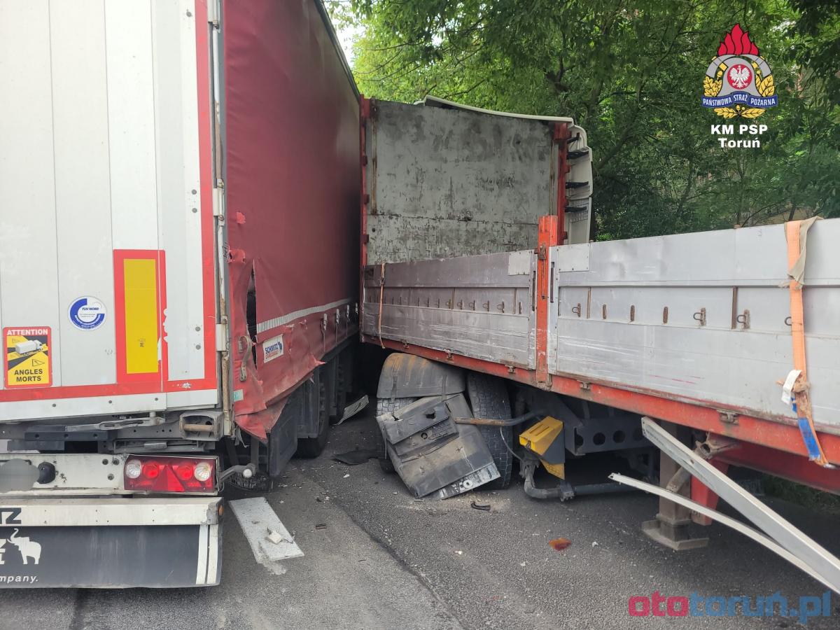 W galerii znajdują się zdjęcia z dwóch wypadków drogowych. Pierwszy to zderzenie dwóch ciężarówek w Małej Nieszawce, gdzie jedna osoba została poszkodowana. Drugi w Toruniu, gdzie doszło do kolizji dwóch samochodów. Policja apeluje o ostrożność na drogach. Trzeba liczyć się z utrudnieniami, a ruch wahadłowy został wprowadzony na miejscu pierwszego zdarzenia.