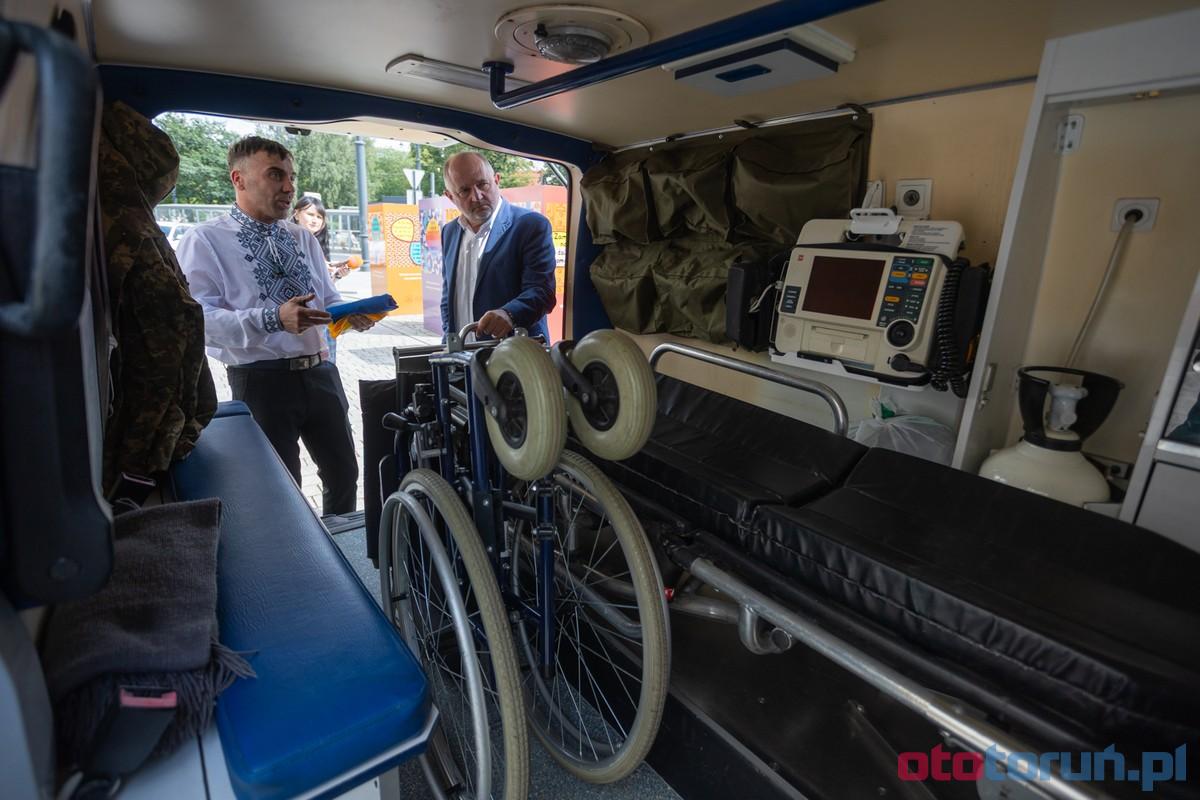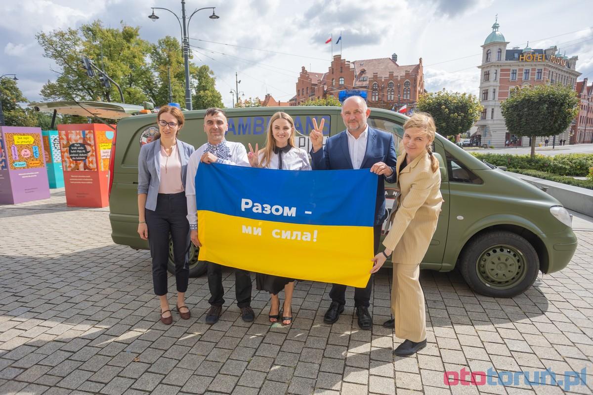 Wspieramy Ukrainę - Galeria zdjęć prezentująca działania województwa kujawsko-pomorskiego na rzecz społeczności lokalnych i uchodźców wojennych. Zdjęcia ambulansu przekazanego na pomoc Ukraińcom, konwojów humanitarnych oraz schronienia dla osób niepełnosprawnych. Akcentujemy wsparcie Fundacji Samoobrona i przygotowanie ambulansu do pracy na linii frontu. Inicjatywa realizowana we współpracy z partnerem - Województwem Kujawsko-Pomorskim.