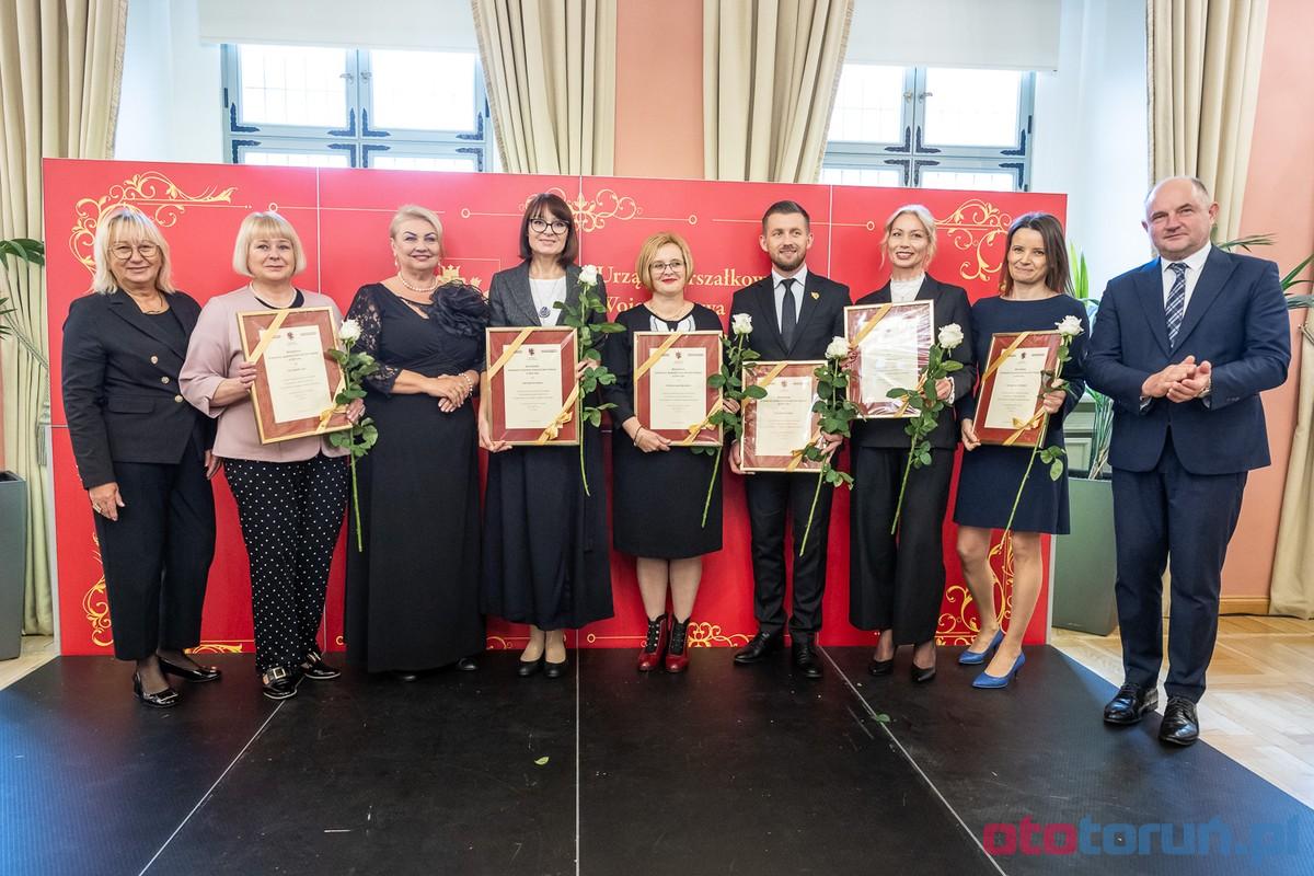 W tej galerii zdjęć można zobaczyć wyróżnionych nauczycieli, którzy otrzymali prestiżowe nagrody za swoje zaangażowanie i twórcze podejście do pracy edukacyjnej. Elżbieta Dąbkowska, Lider Edukacji 2025, inspirowała uczniów do nauki matematyki i chemii od 38 lat. Beata Mendry, dyrektor Zespołu Szkół nr 19 w Bydgoszczy, została uhonorowana za innowacyjne programy edukacyjne, a Michał Dąbkowski, dyrektor X LO w Toruniu, za tworzenie nowoczesnej przestrzeni edukacyjnej. To nauczyciele, którzy z pasją i zaangażowaniem kształtują młodych ludzi.
