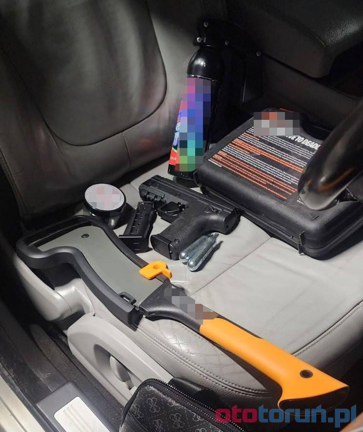 Wczoraj wieczorem toruńscy kryminalni zatrzymali trzech dobrze znanych mężczyzn, powiązanych z pseudokibicami lokalnego klubu. Znaleziono przy nich niebezpieczne przedmioty. Zdjęcia z zabezpieczeń znajdziesz w galerii. Są podejrzanym Denis Z., Bartosz Sz. i Natan S. Prokuratura bada sprawę, a za przestępstwo grozi im do 8 lat więzienia. Dowiedz się więcej, śledząc nas na Facebooku i Instagramie.